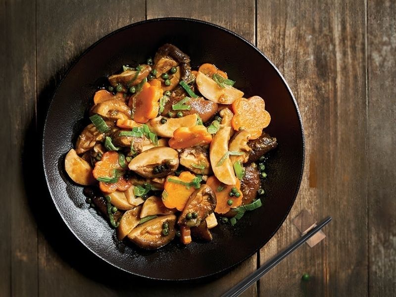 Với hương thơm nồng nàn và độ béo mịn đặc trưng, nấm đông cô kho chao là món chay hấp dẫn nhờ sự hòa quyện giữa nấm dai giòn và chao béo ngậy. Mỗi miếng nấm thấm đẫm gia vị mang đến cảm giác bùi bùi, đậm đà, khiến ai thưởng thức cũng khó lòng quên được.