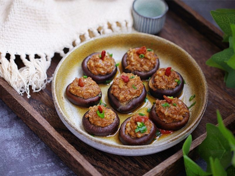 - Chế biến: Cho nấm nhồi tôm thịt vào hấp 10–12 phút cho chín. Hoặc chiên áp chảo áp chảo vàng 2 mặt.