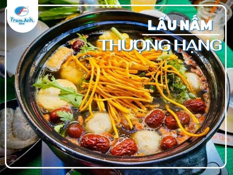 - Lẩu nấm Thượng Hạng nhà Trâm Anh Food: Gồm nấm bào ngư trắng, nấm đùi gà, nấm bạch tuyết, nấm hoàng kim, nấm kim châm, nấm đông cô, táo đỏ, đông trùng hạ thảo, ớt, bông hẹ.