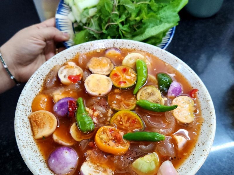 - Đồ ăn kèm: xoài xanh, khế chua, cải bẹ xanh, rau thơm các loại,...