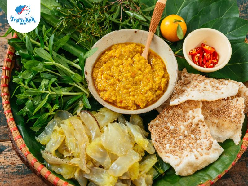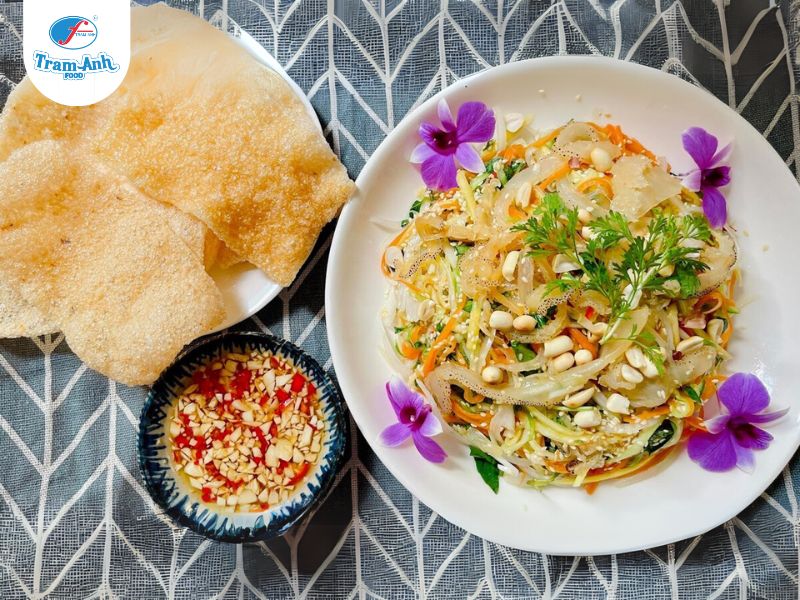 - Thưởng thức: Xếp sứa tươi Trâm Anh ra đĩa, chấm cùng mắm tôm pha chuẩn vị. Nếu thích, ăn kèm với chuối chát, khế chua và rau thơm sẽ làm món ăn thêm cuốn hút.
