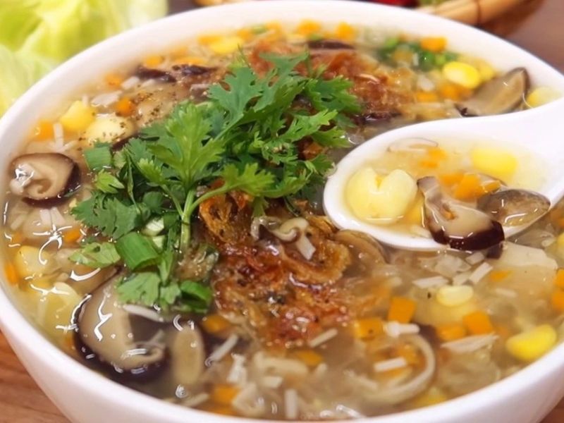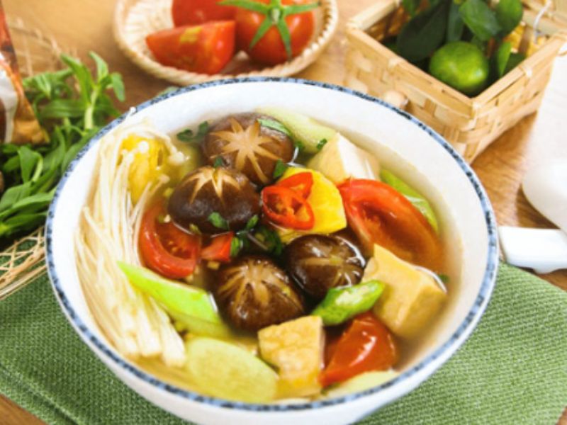 Canh chua nấm là một trong những món chay thanh mát, dễ ăn, đặc biệt phù hợp cho những ngày hè oi bức. Món ăn mang vị chua ngọt hài hòa từ me và dứa, xen lẫn độ giòn tươi của các loại nấm và rau củ, không chỉ ngon miệng mà còn giúp giải nhiệt hiệu quả. Dù ăn cùng cơm nóng, bún hay mì đều rất hấp dẫn.