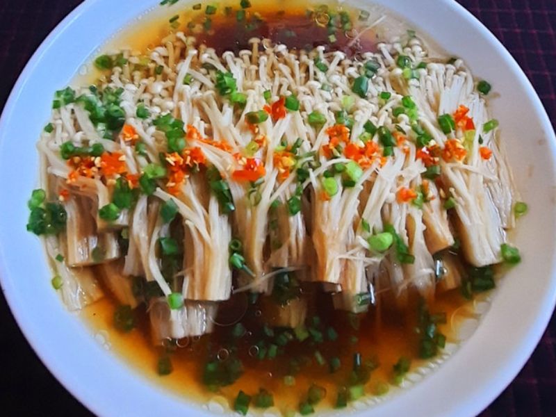 Nấm kim châm hấp nước tương là món ăn đơn giản, dễ thực hiện nhưng lại cực kỳ bổ dưỡng. Nấm kim châm không chỉ giàu chất xơ và vitamin mà còn được biết đến với công dụng hỗ trợ điều hòa huyết áp và giảm nguy cơ xơ vữa động mạch. Nhờ vị ngọt thanh tự nhiên, món chay từ nấm kim châm luôn được nhiều gia đình yêu thích – đặc biệt là phiên bản hấp nước tương đậm đà mà vẫn nhẹ bụng.