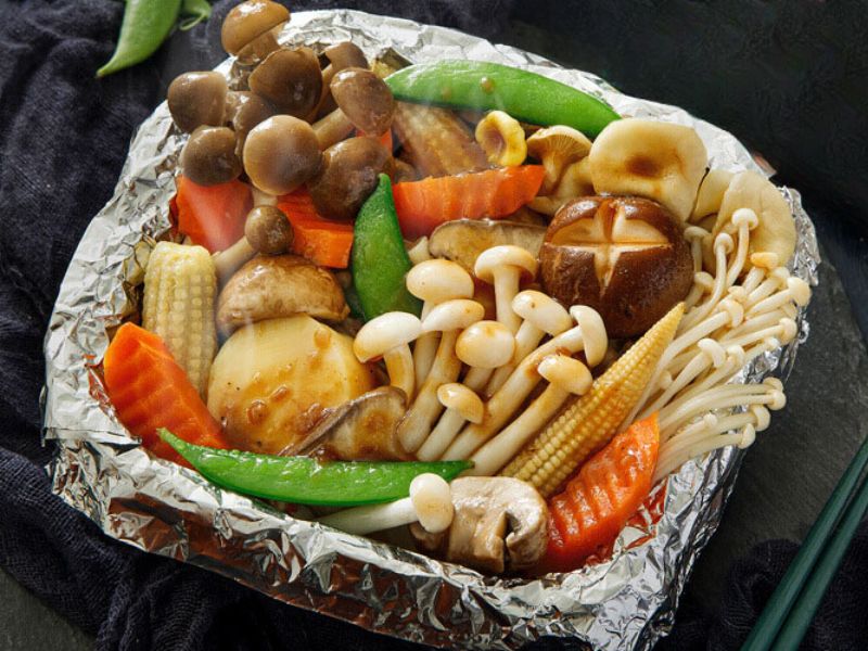 - Gói và nướng: Cho nấm vào giữa miếng giấy bạc, gói kín. Nướng trên vỉ hoặc trong lò ở 180°C khoảng 15–20 phút cho đến khi nấm chín mềm và dậy mùi thơm.