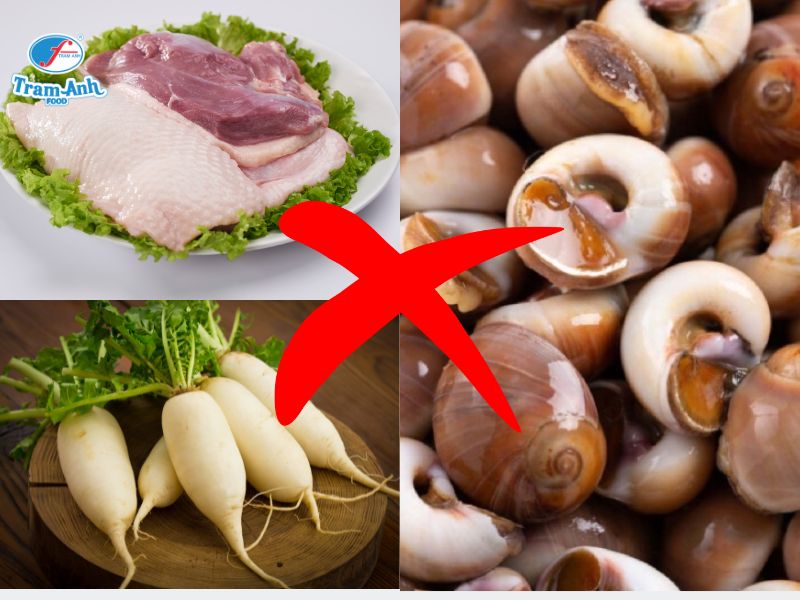 - Ốc: Giống như thịt vịt, ốc cũng mang tính hàn mạnh. Kết hợp với nấm bạch tuyết sẽ làm giảm nhiệt trong dạ dày, dễ gây rối loạn tiêu hóa, đầy bụng, tiêu chảy.