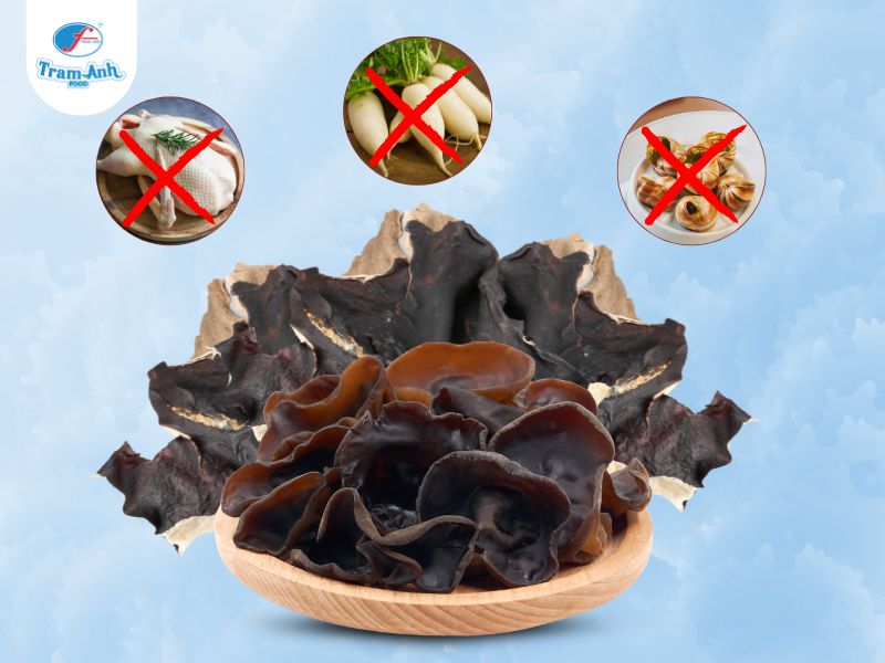 - Nấm tai mèo (mộc nhĩ đen) kỵ ăn cùng thịt vịt và ốc.