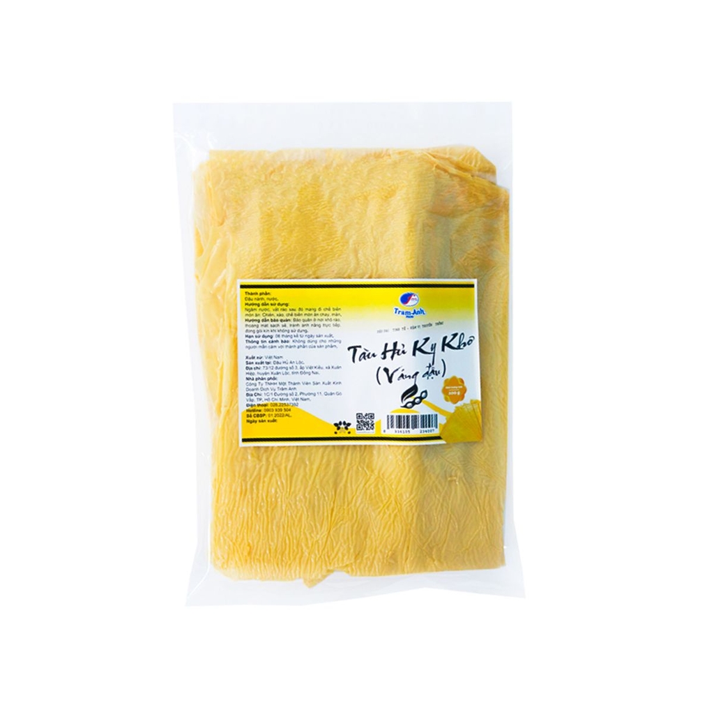 Tàu hủ ky lá khô cũng là một sản phẩm làm từ đậu nành. Hạt đậu nành phải trải qua quá trình tách vỏ, xay xát, lọc bả sau đó là đem lên những cái chảo to để nấu. Trong quá trình nấu sữa đậu nành, một lớp váng mỏng chứa đạm và chất béo sẽ hình thành trên bề mặt. Sau đó sẽ vớt lớp màng mỏng này và phơi khô cho ra thành phẩm là tàu hủ ky lá khô. Đặc tính của tàu hủ ky lá khô là sẽ để được lâu, đóng gói bao bì kín hút chân không. Tàu hủ ky lá khô 200gr giàu chất dinh dưỡng có thể thay thế thịt, cho chúng ta những bữa ăn tốt cho sức khoẻ đầy đủ dinh dưỡng.