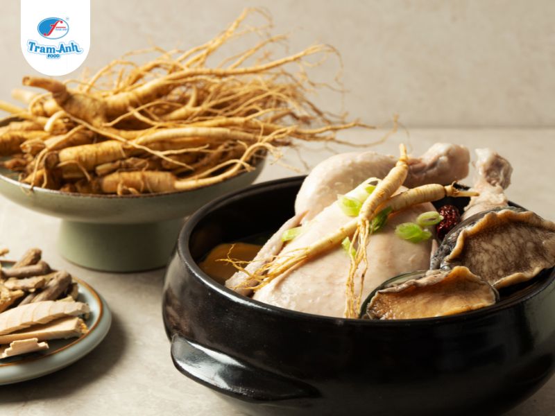 - Sâm tươi Hàn Quốc hầm gà: Món gà hầm sâm là lựa chọn hoàn hảo để bồi bổ cơ thể. Kết hợp sâm tươi với gà, hạt sen, táo đỏ và các gia vị, bạn sẽ có một món ăn vừa thơm ngon vừa giàu dinh dưỡng, đặc biệt tốt cho người mới ốm dậy, người cao tuổi hoặc cần phục hồi năng lượng.
