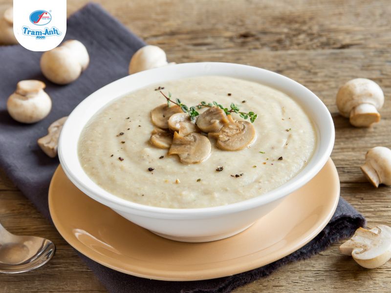 - Súp nấm: Món súp nấm giàu dinh dưỡng, dễ tiêu hóa, rất lý tưởng trong những ngày trẻ cảm lạnh hoặc cần món ăn nhẹ.