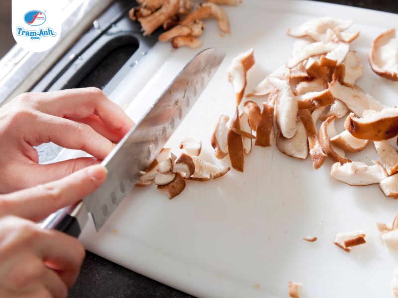 - Băm nhỏ: Nên băm nhỏ nấm thành những miếng vừa miệng để tránh bé bị hóc.